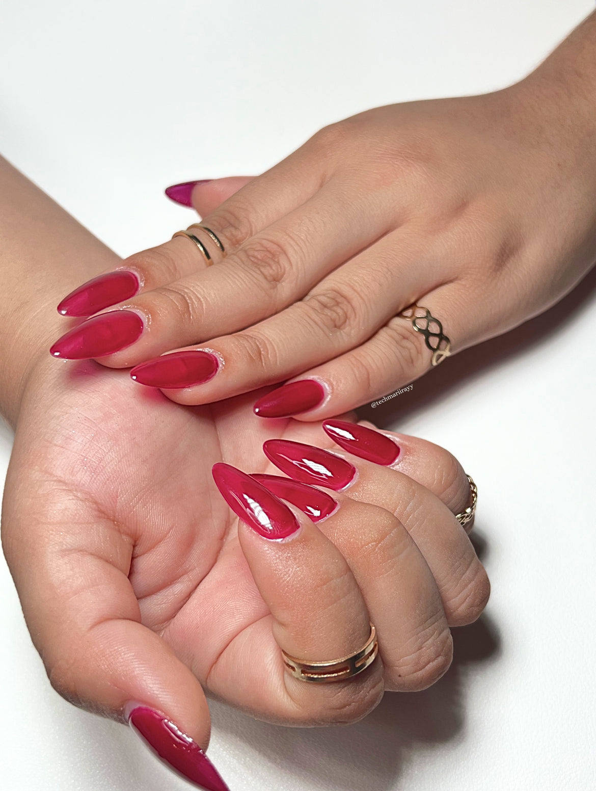 ย I use soft gel nail tips (not plastic) for durability. Depending on the design, I sometimes use a layer of builder gel for extra strength. I also use high quality gel polish that cures under a UV nail lamp (not regular polish).